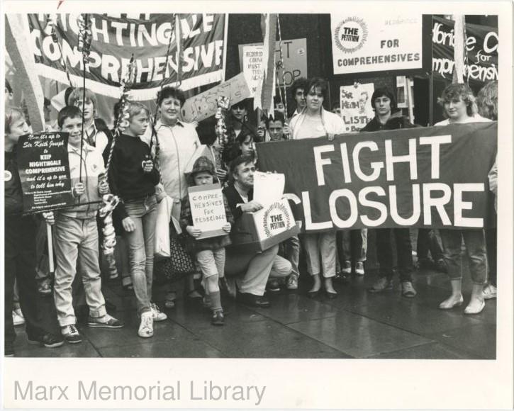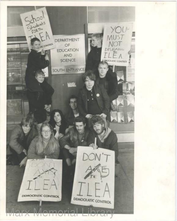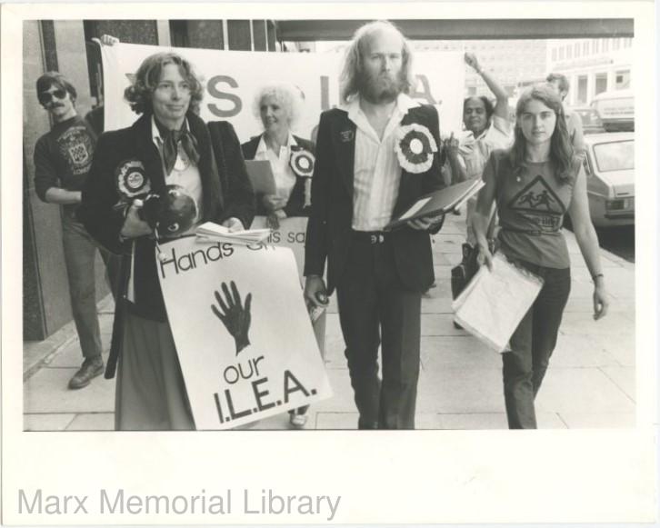 Three-year-old Jane McDonald went with her mother on the demo to save the ILEA. School students and members of the Young Communist League who were on the demo are included in the picture below. Copyright Morning Star, Courtesy Marx Memorial Library, Londo