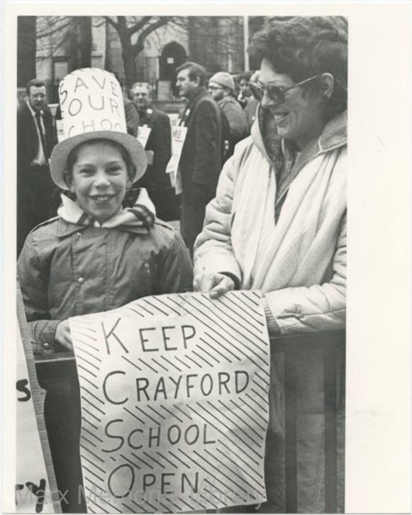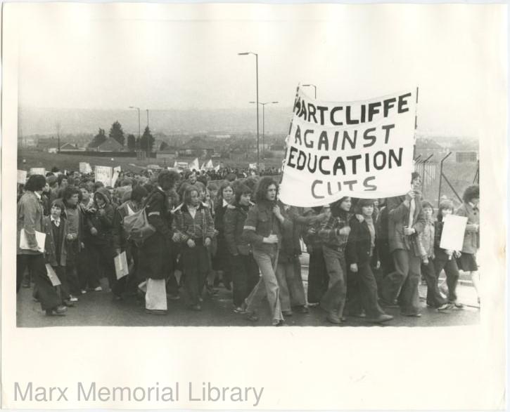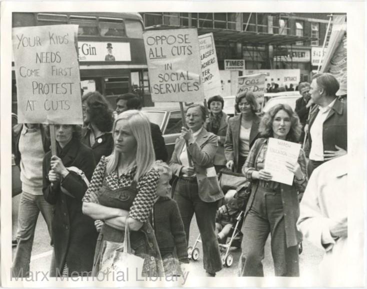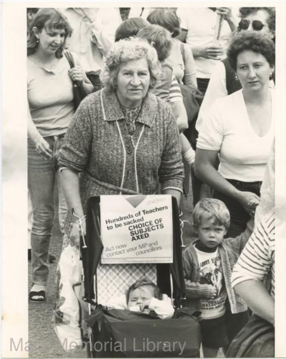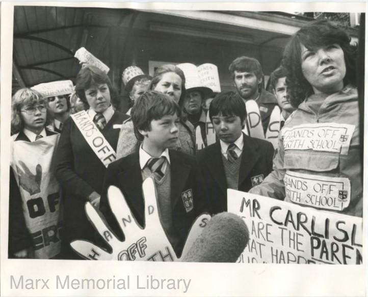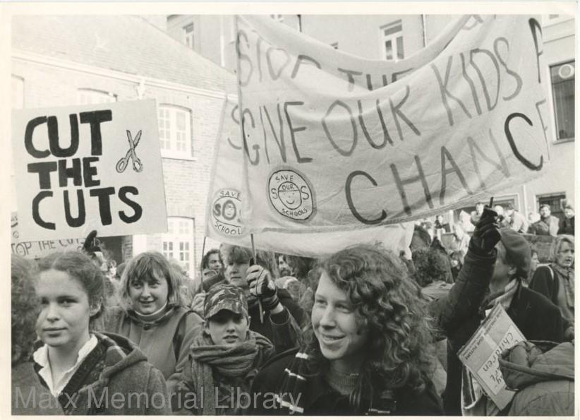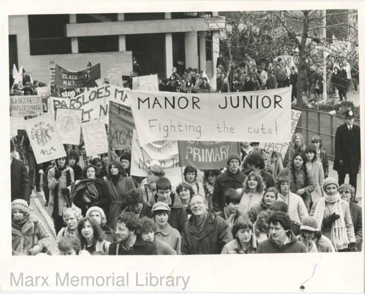 10th April 1982. Parents and teachers from Barking demonstrating in London against staff cuts. Copyright Morning Star, Courtesy Marx Memorial Library, London