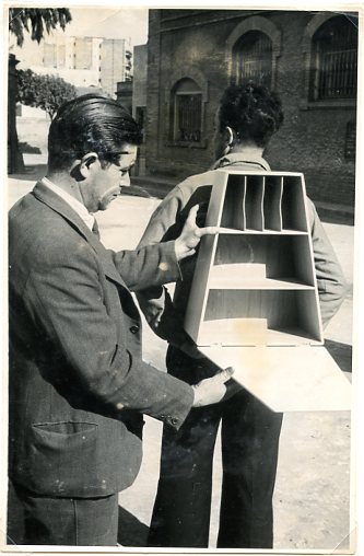 People in Cave Hospital. (33/8/31A). People and furniture in cave hospital, Ebro.