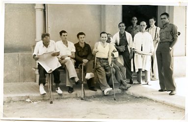 Patients and medical staff outside. (33/10/41A). Barcelona Hospitals.