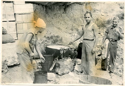 Meal Preparations at Cave Hospital, 1938. (33/8/34(A)A). People cooking/dishing up food, cave hospital, Ebro.