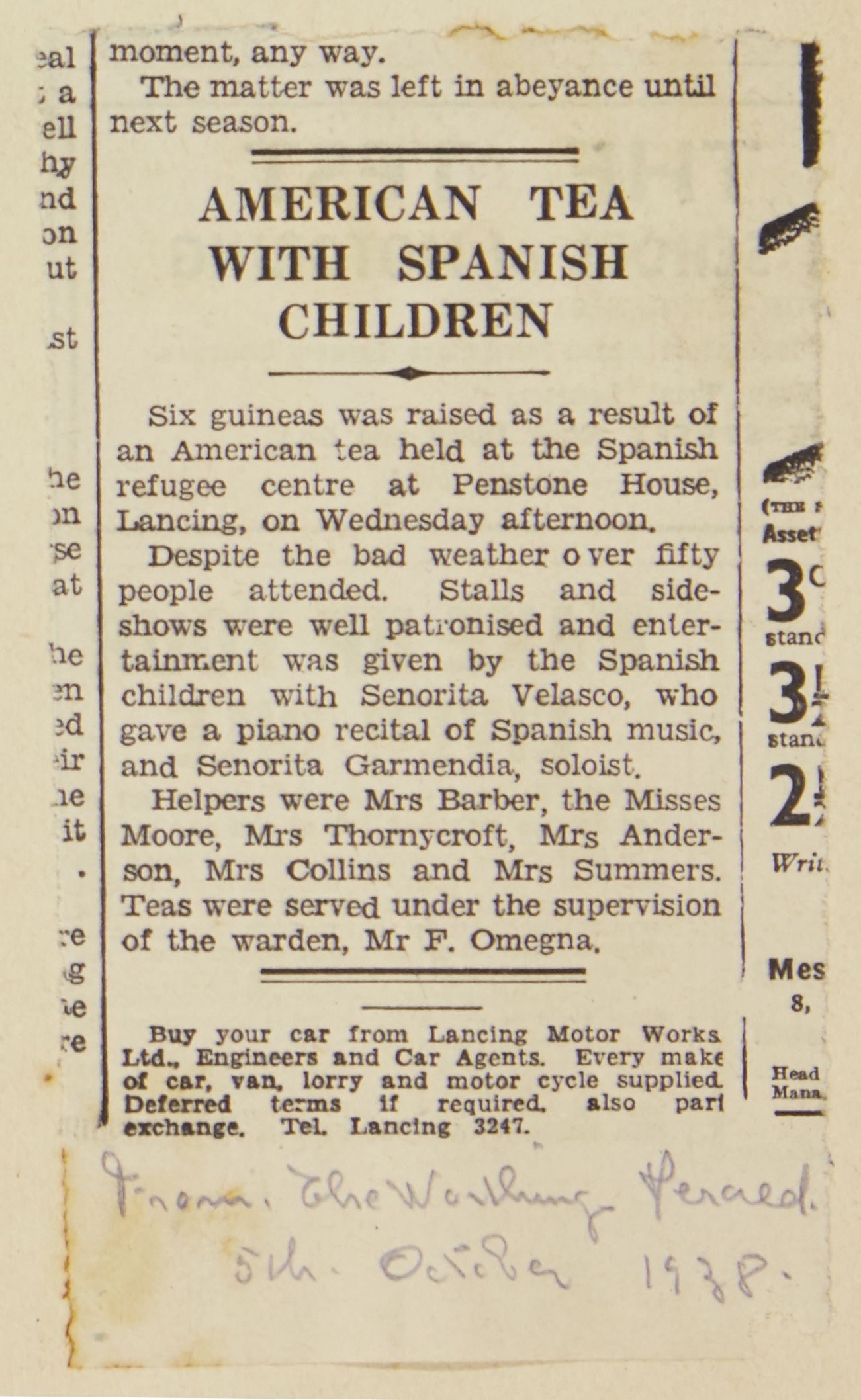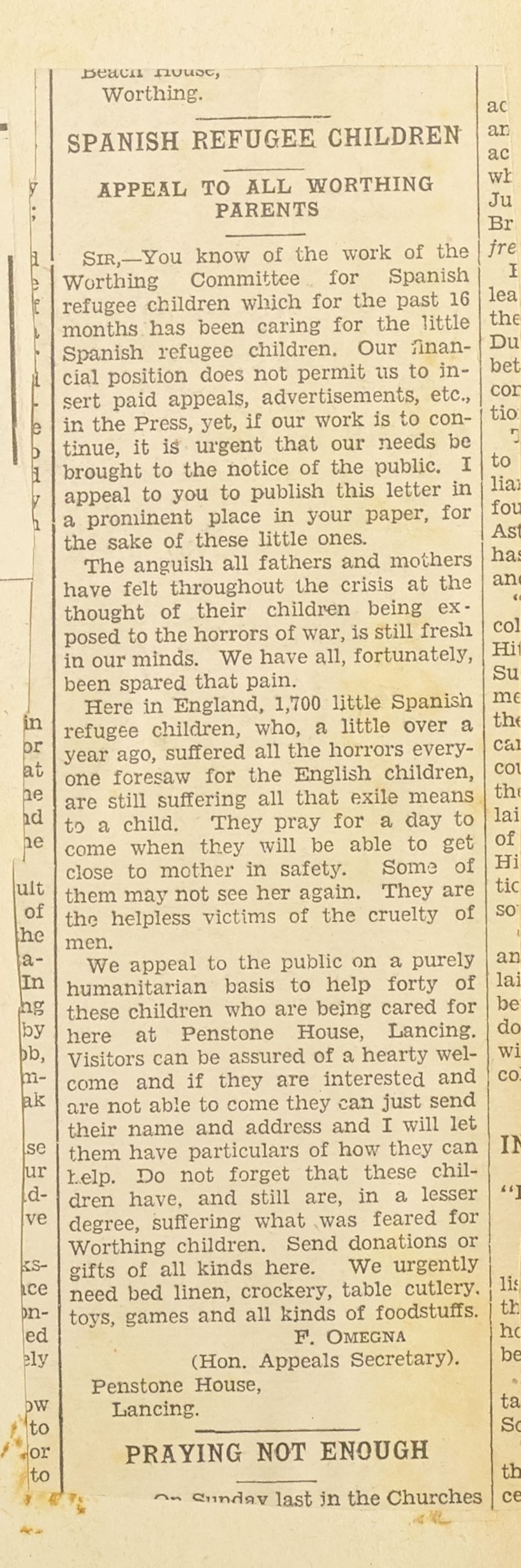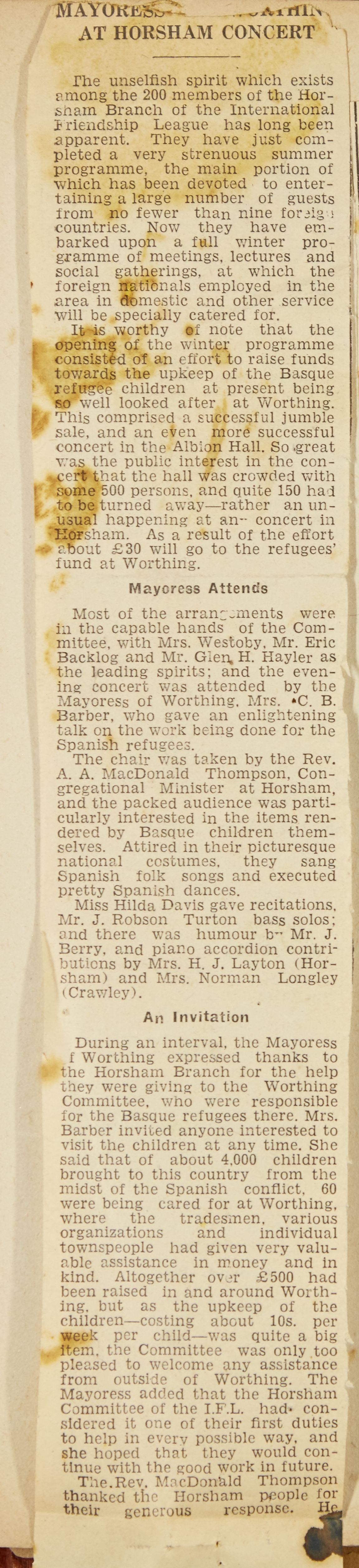 Back to topThese cuttings report on the work of the Committee of Spanish Refugee Children, on specific appeals and fundraising events and activities undertaken to care for and support the children.