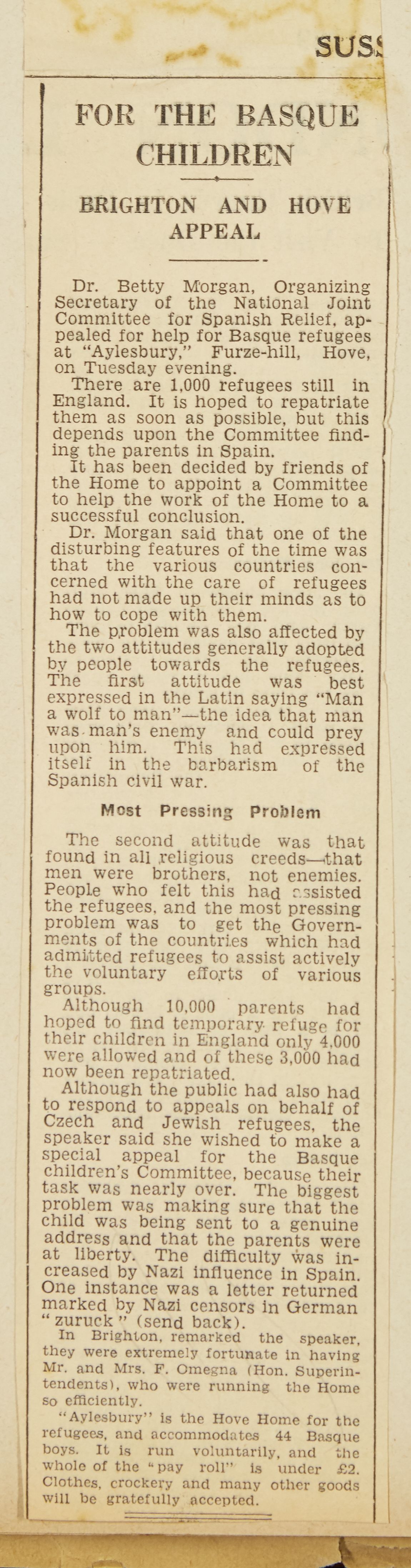 These cuttings report on the work of the Committee of Spanish Refugee Children, on specific appeals and fundraising events and activities undertaken to care for and support the children.