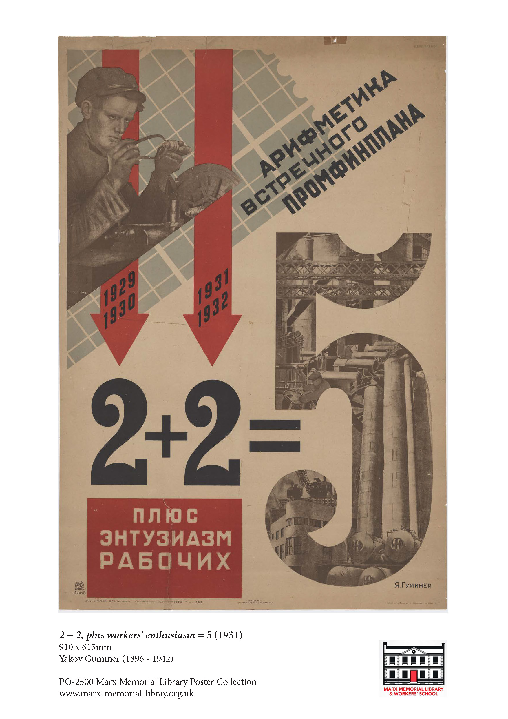 A2 Poster Print 2 + 2, plus workers' enthusiasm = 5 (1931) by Yakov Guminer (1896 - 1942)